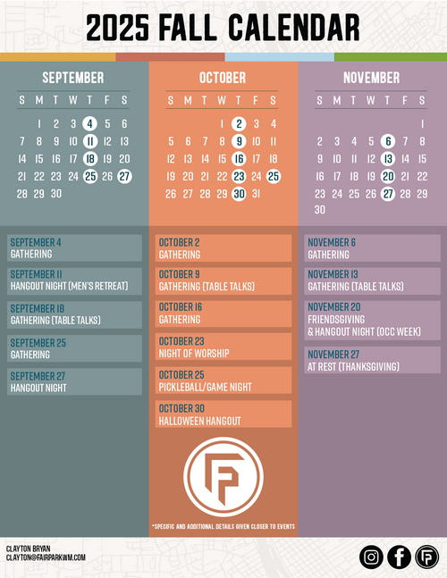 The Bible instructs Christians to serve those around them. Anyone interested in volunteer or leadership opportunities should contact Clayton Bryan at 318-680-8328 or by email at clayton@fairparkwm.com.